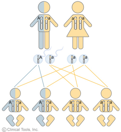 FIGURE 10. AUTOSOMAL DOMINANT INHERITANCE PATTERN. IMAGE USED WITH PERMISSION OF CLINICAL TOOLS, INC. VIA WWW1.GENETICSOLUTIONS.COM