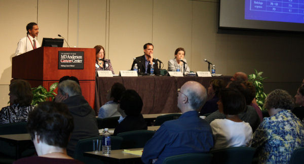 The 2010 GIST Summit at MD Anderson was attended by 105 patients and carers from 17 States and Canada. People of all ages came, including two babies! The Trent team swung into action magnificently, with the kids running registration and passing out forms and microphones, and with Sharon Trent presiding over them and orchestrating the day’s menu and food service. When you add the speakers and support staff, we had over 130 people present.